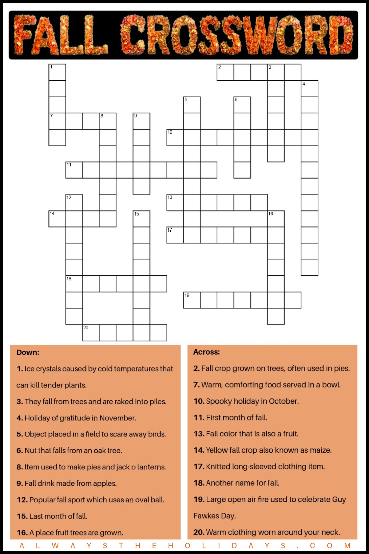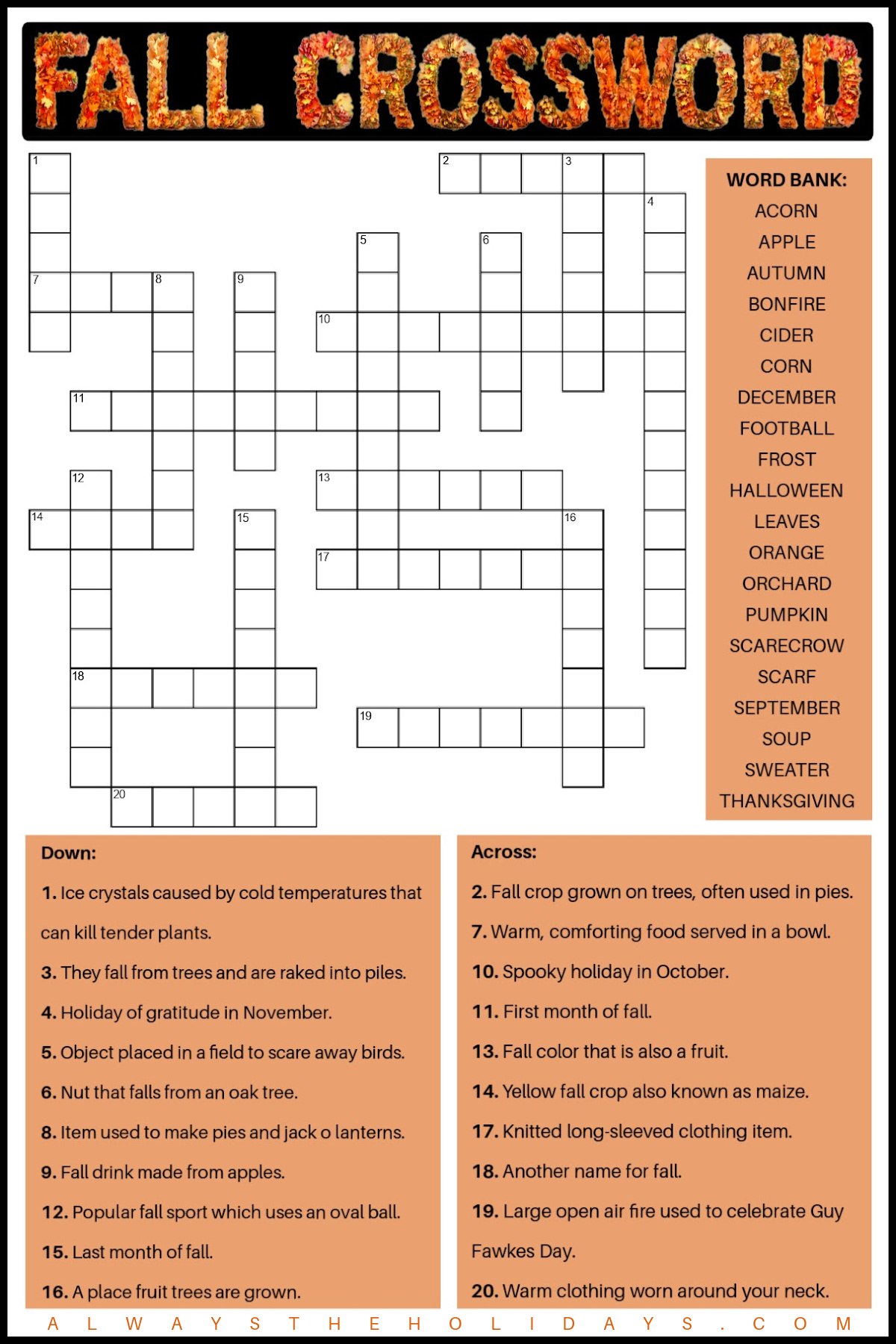 Free Fall Crossword Puzzle Printable - With Answer Key Included